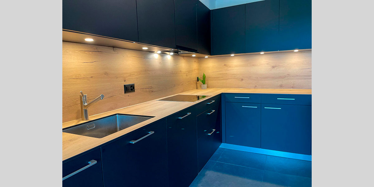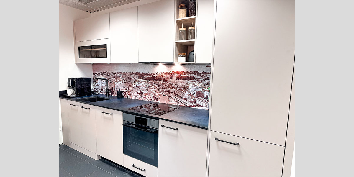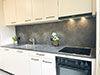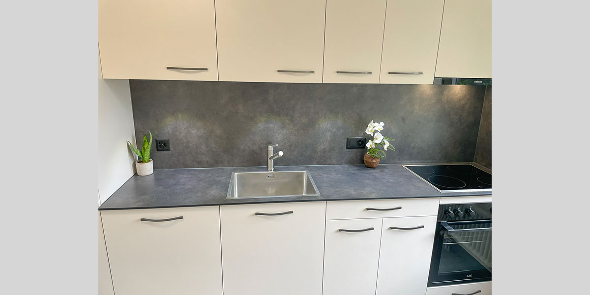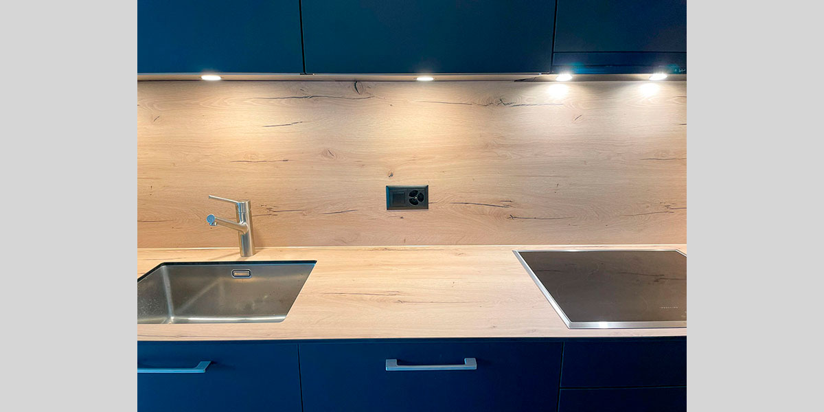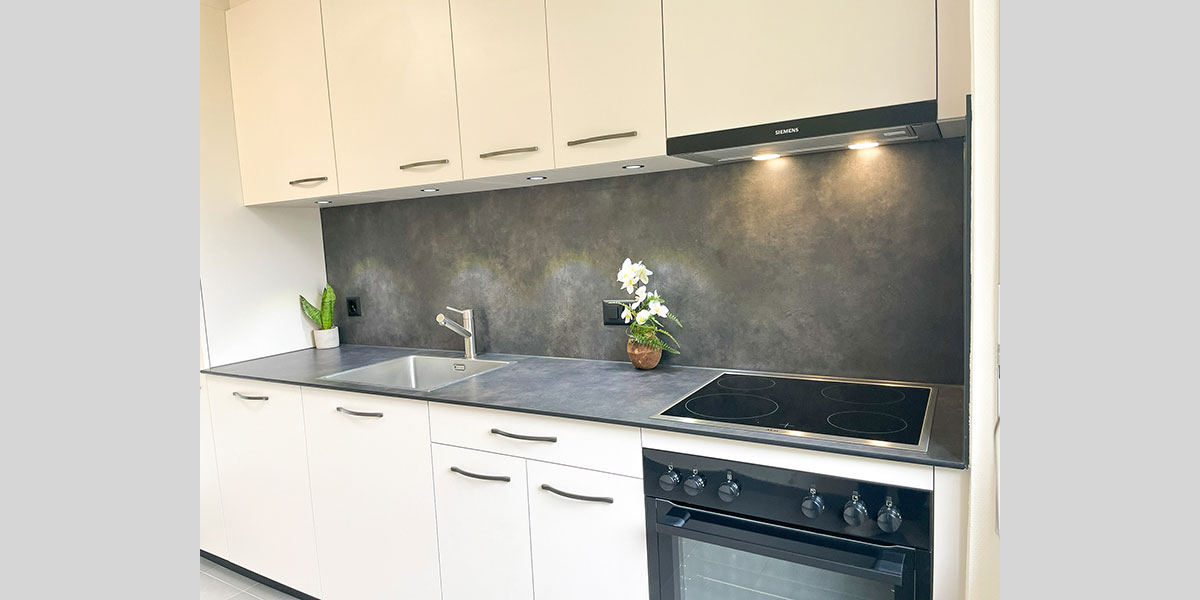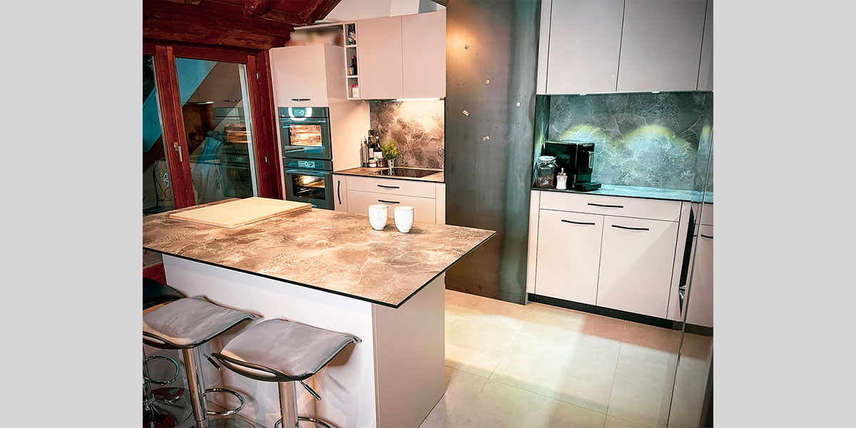 - De la crédence en céramique, quart, verre poli, inox ou composite faisant lien avec le plan de travail